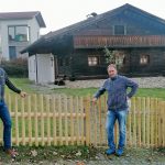 Bildunterschrift zu Neuer Zaun Klausenhof Arrach 2020 Bild 1: Ein wunderschöner Blickfang ist der neue Zaun am Klausenhof, errichtet von den Riedlstoana Arrach mit ihrem Vorsitzenden Thomas Brandl (rechts). Über die gelungene Aktion freut sich auch Bürgermeister Gerhard Mühlbauer.