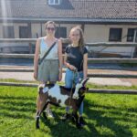 Bildunterschrift: Noch jung, aber schon stattlich: Tauernschecken-Bock „Anderl“ darf ab kommenden Herbst für neuen Zicklein-Nachwuchs am Burghang sorgen. Darüber freuen sich Umweltamtleiterin Sarah Freudlsperger (l.) und FÖJ-lerin Annalena Wallner.