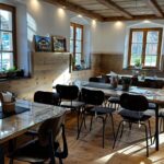 Im Inneren erstrahlt der Verkaufsraum in rustikal-moderner Atmosphäre. Die Gratulanten zeigten sich beeindruckt vom neuen Konzept, denn mit viel Fingerspitzengefühl und Liebe zum Detail ist es gelungen, Alt- und Naturholzelementen aus dem ursprünglichen Bauernhaus in das helle und moderne Ambiente zu integrieren. „Alte Holztüren finden sich als Tischplatten wieder, ehemalige Fester wurden zu Bilderrahmen umfunktioniert und viele Holzbalken und -dielen aus dem alten Gebäude wurden liebevoll in die neue Innenarchitektur integriert und so den alten Baustoffen ein zweites Leben geschenkt“, erklärt Franziska Simon.