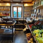 Der rund 80m² große neue Hofladen bietet ein umfassendes Sortiment an hofeigenen Erzeugnissen und ausgewählten Produkten der Region. In der 5m langen Theke werden hofeigene Fleisch- und Wurstwaren sowie Käse dargeboten. Ansprechend präsentiert sich auch das restliche Sortiment aus saisonalem Obst und Gemüse, Marmeladen und Honig, Eier, Schnaps und Nudeln.