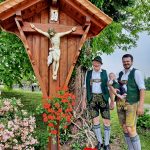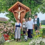 Der Widernhof der Bauers- und Trachtlerfamilie Thaurer in Prien-Trautersdorf hat wieder ein frisch hergerichtetes Hof- und Feldkreuz. Bereits vor 40 Jahren erstellte es erstmals Peter Thaurer senior, nun galt es das in die Jahre gekommene sakrale Werk von Zeit- und Wetterschäden zu befreien. Dabei half in ehrenamtlicher Weise Paul Panzer, Ehrenoberleutnant der Priener Gebirgsschützenkompanie. Er sorgte in mehreren Monaten für die Erneuerung des Corpus Christi. Peter Thaurer senior erneuerte derweil mit handwerklichem Geschick das Kreuzbauwerk mit Bedachung. Zur Segnung im Kreise der Familie kam Ruhestandspfarrer Klaus Wernberger zum Widernhof, anschließend gab es noch ein gemütliches Beisammensein.