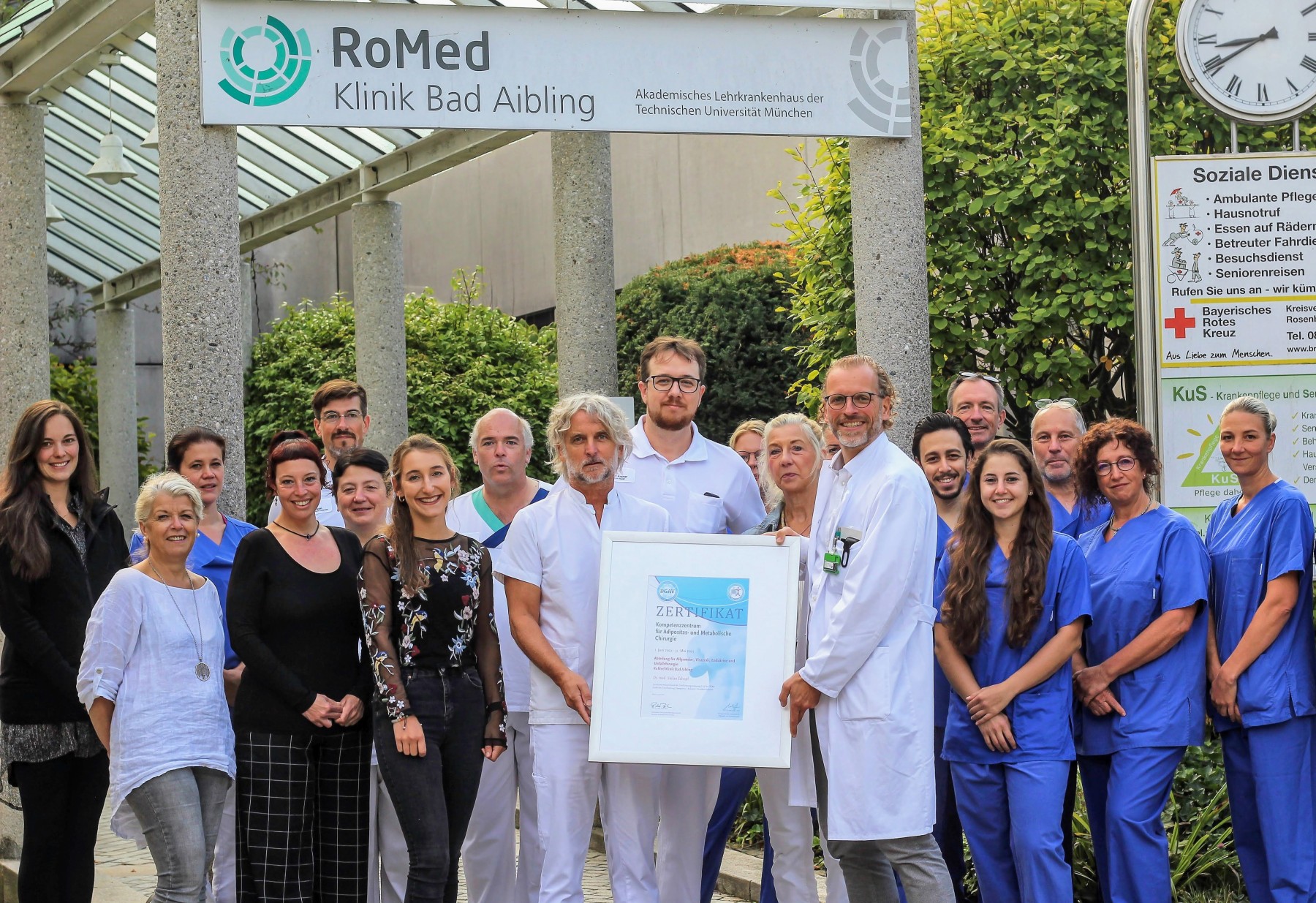 Chefarzt der Chirurgie Prof. Dr. Stefan Schopf (Mitte rechts) und sein Team des Adpositaszentrums der RoMed Klinik Bad Aibling freuen sich über die Auszeichnung.