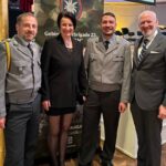 Bildunterschrift: Der zweite Bürgermeister von Aschau Michael Andrelang (rechts) und Gemeinderätin Christine Parigger (zweite von links) vertraten die Gemeinde Aschau beim Neujahrsempfang 2024 der Gebirgsjägerbrigade 23 im Alten Königlichen Kurhaus in Bad Reichenhall. Alle Patengemeinden der Kompanien waren zu diesem Empfang geladen. Der Kompaniechef der dritten Kompanie des Gebirgsjägerbataillons 231 Major Marcel Zens (zweiter von rechts) und der Kompaniefeldwebel Oberstabsfeldwebel Klaus Fischer (links) kümmerten sich beim Empfang um die Gäste und Paten aus dem Chiemgau.