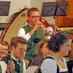 Die Musikkapelle nahm dann die Zuhörer mit auf eine musikalische Weltreise, bei der Irene Biebl-Daiber als Ansagerin in unterhaltsamer und informativer Art die Anwesenden in fünf verschiedenen Sprachen „ein gutes neues Jahr“ wünschen konnte. Insgesamt neun Werke hatte Dirigent Albert Osterhammer mit seinen Musikern einstudiert, wienerisch/italienisch beginnend mit dem “Boccaccio-Marsch” von Franz von Suppé. Für die beiden nächsten Stücke besuchte die Kapelle Spanien. „Estudiantina“ von Emil Waldteufel ist ein schmissiges Walzerpotpourri mit spanischen Nationalmelodien, dem sich der Paso Doble „Gallito“ („Der kleine Hahn“) von Santiango Lope als Huldigung für den berühmten Stierkämpfer José Gómez Ortega anschloss. Mit der „Lieblings-Polka“ von Ernst Mosch wurde noch einmal ein kurzer Abstecher nach Böhmen unternommen, bevor es zu einer Reise über den großen Teich nach Amerika ging. Mit den beiden Medleys „New York Ouvertüre“ von Klees Vlak und „Visit to George Gershwin“ von Vlad Kabeck waren modernere Klänge und Rhythmen zu hören. Der Walzer „Malý Dárek“ von Sven Heindt sowie die „Sorgenbrecher-Polka“ von Nobert Gälle führte dann wieder zur heimischen bayrisch-böhmischen Blasmusik zurück. Das sehr eindrucksvolle Konzert endete mit dem Marsch “Auf Adlers Schwingen” von Alexander Pfluger. Für die Konzertbesucher gab es, dank des lang anhaltenden Applauses mit dem „Radetzky-Marsch“ von Johann Strauß Vater eine mittlerweile traditionelle Zugabe.