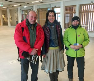 Die stellvertretende Museumsleiterin Dr. Claudia Richartz (Mitte) begrüßte um kurz nach 9.00 Uhr am Montag die ersten Besucher an der Glentleiten. Hannelore Alber und Rolf Dietrich aus Schleiden in der Eifel machen derzeit Urlaub in Oberbayern. Bildquelle: Bezirk Oberbayern, Archiv Freilichtmuseum Glentleiten.