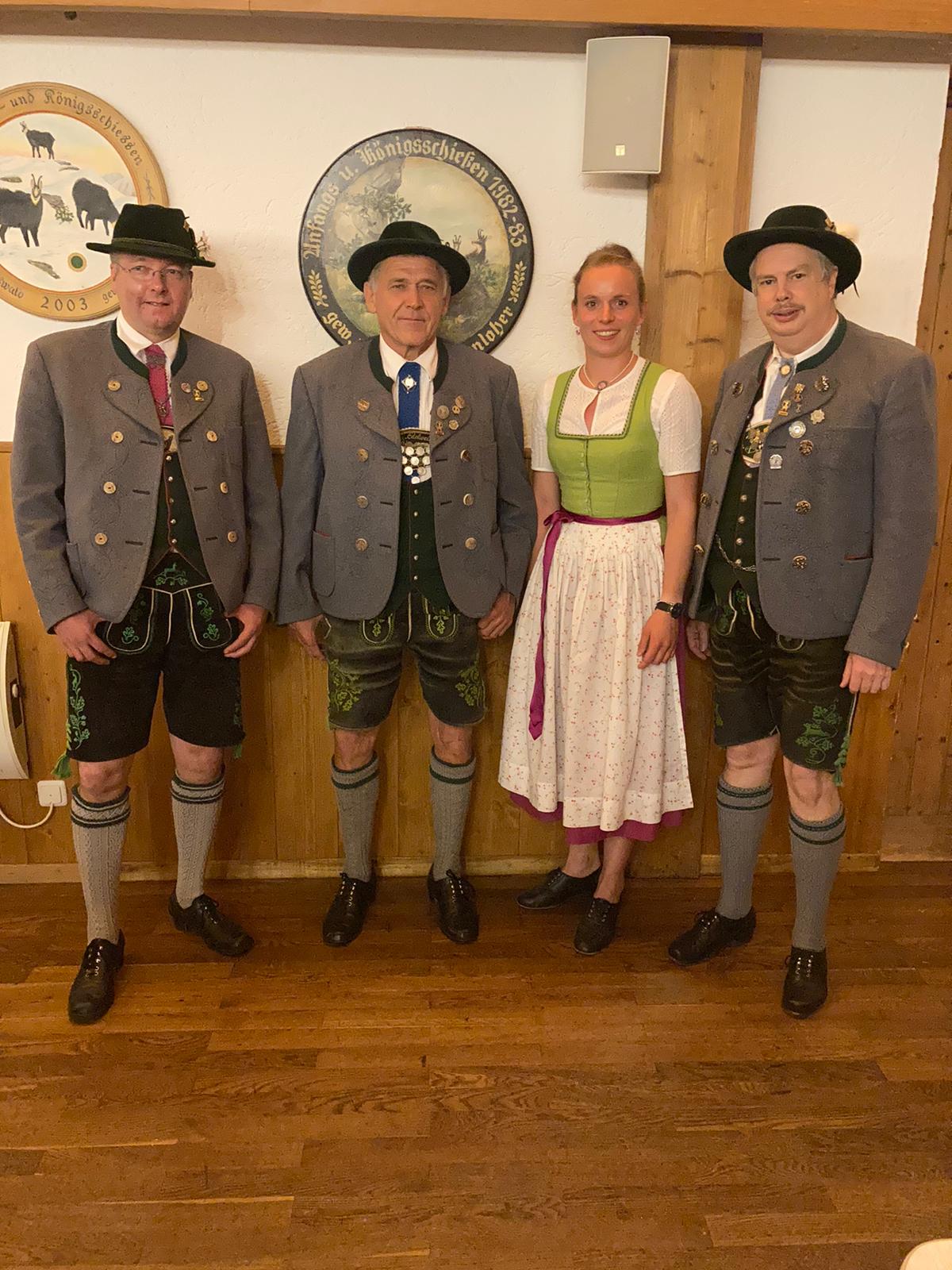 neue Vorstandschaft: von links: Andreas Kirchberger (1. Kassier), Franz Nirschl (2. Gauvorstand), Magdalena Probst (1. Schriftführerin), Schorsch Englhart (1. Gauvorstand)