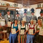 Rudi Wörndl stellte sich nicht mehr zur Wahl als Beisitzer. Für seine langjährige verdiente Vereinsarbeit überreichte Erster Vorstand, Paul Kink das goldene Vereinsehrenzeichen und dankte Rudi Wörndl für sein Engagement und die gute Zusammenarbeit. Maria Wörndl wurde als Volksmusikwartin wieder gewählt. Sebastian Schmid sen. wurde für das neugeschaffene Amt als Vereinsstadlwart gewählt. Im Rahmen der Jahreshauptversammlung wurden folgende Mitglieder für ihre langjährige Mitgliedschaft geehrt. Erster Vorstand Paul Kink und sein Stellvertreter Peter Reiter überreichten die Ehrenurkunden und die Ehrenzeichen und dankten allen für ihre Vereinstreue: