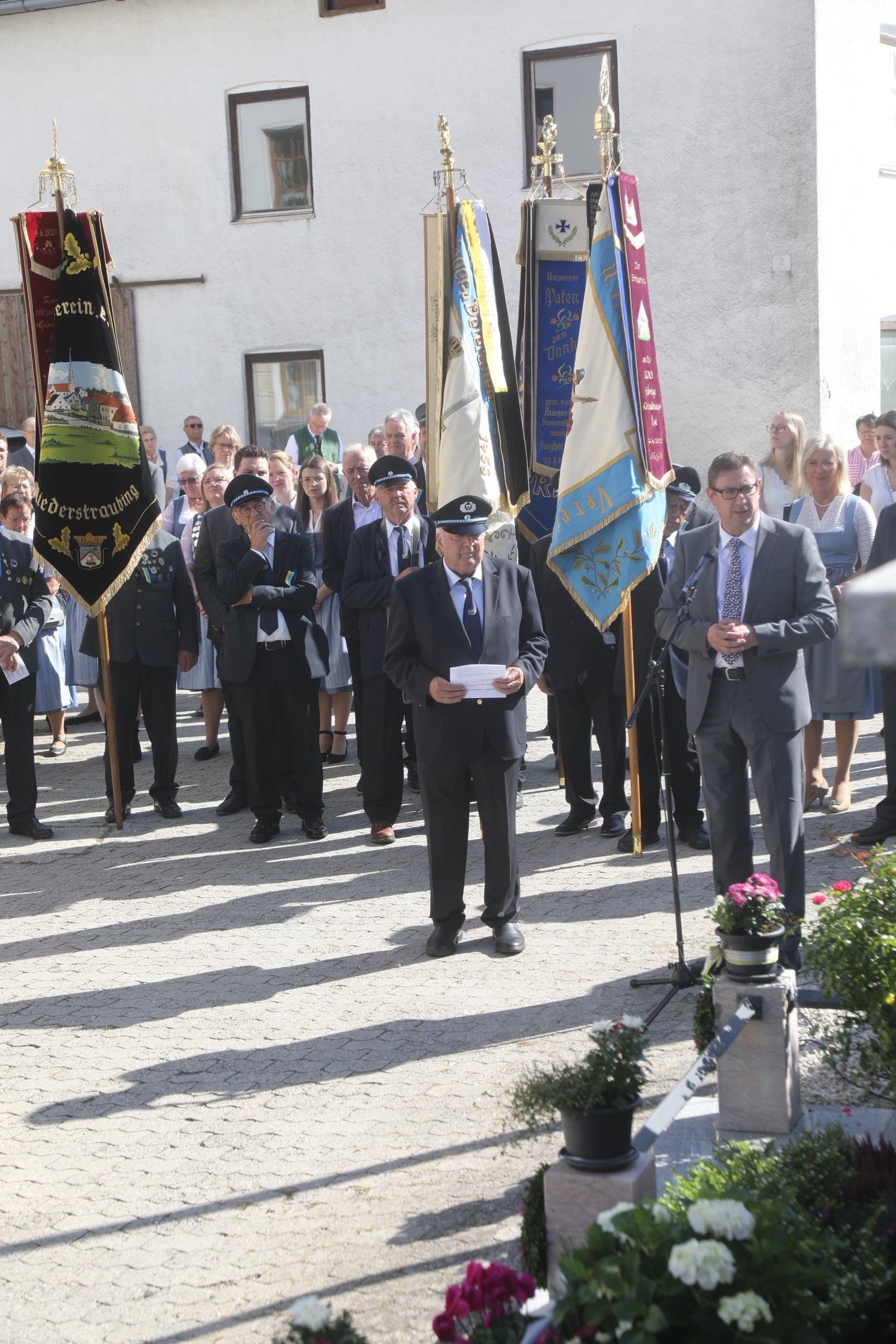 Landrat Martin Bayerstorfer bei seiner Rede am renovierten Kriegerdenkmal