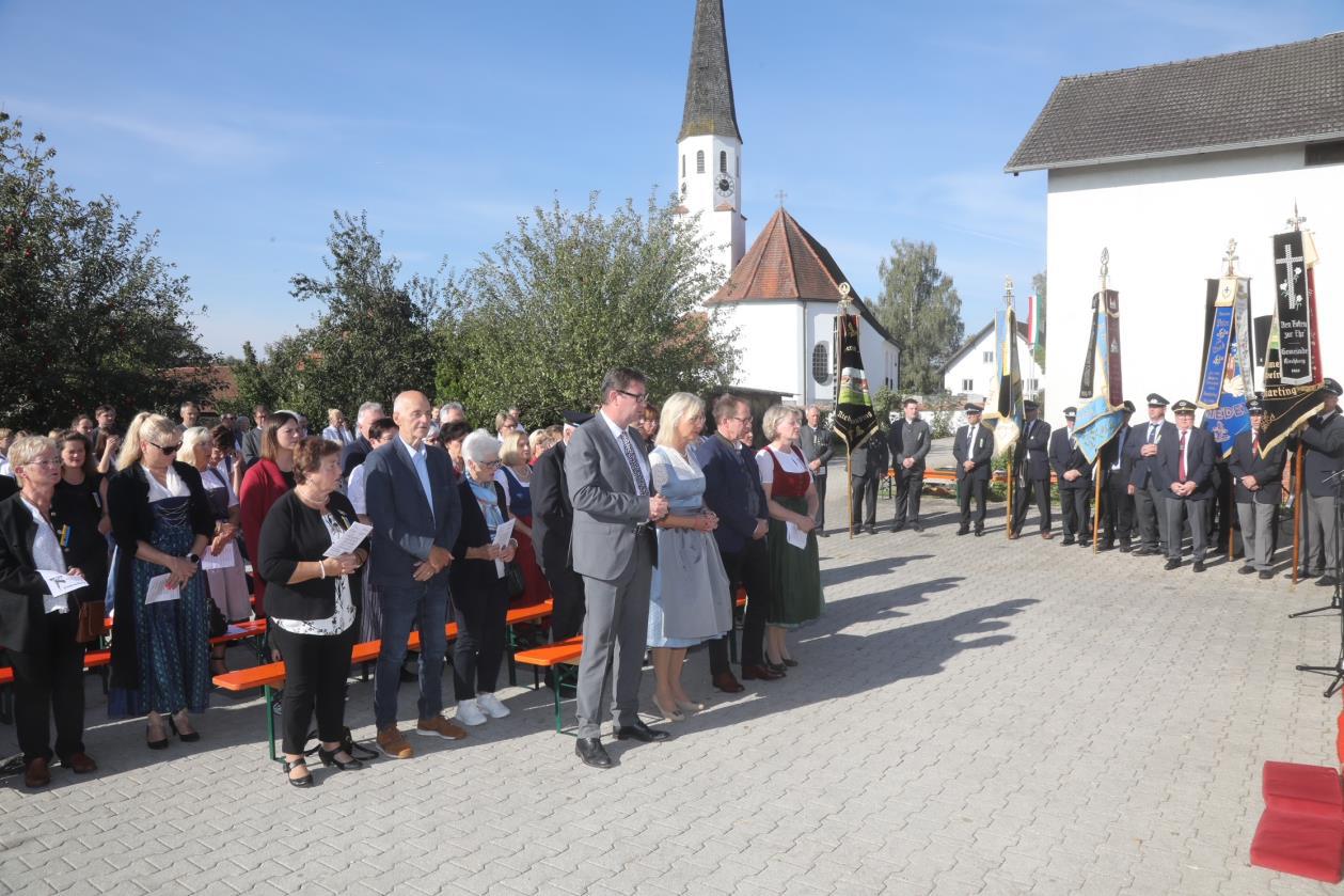 Holzlandpfarrer Jacek Jamiolkowski segnete das gestiftete Trauerband der Gemeinde Steinkirchen
