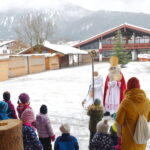 Schon tagelang gab es kein anderes Thema im Kindergarten Schleching, als die Frage, ob der Nikolaus in diesem Jahr kommt. Die Freude war groß, als der Nikolaus in seinem roten Mantel, mit Stab und Mitra und dem wunderschönen Engel an seiner Seite auf den Dorfplatz schritt, wo ihn die Kinder schon im Musikpavillon erwarteten. Begrüßt wurde er mit einstudierten Liedern.