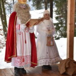 Bild 4748 Der Nikolaus (Otto Zaiser) und sein Engerl (Maria Zaiser) zog mit den Kindern in den Waldkindergarten