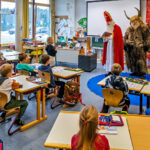 Während draußen die ersten Schneeflocken des jungen Winters die Landschaft überzogen, warteten die Kinder der Grundschule gespannt in ihren Klassenzimmern. Die Vorfreude war greifbar: neugierige Blicke aus den Fenstern, leises Tuscheln und die Frage, ob der Nikolaus wohl heute etwas aus seinem goldenen Buch vorlesen würde. Als die Kutsche schließlich vorfuhr, kehrte eine beinahe andächtige Ruhe ein. Der Nikolaus trat ein – warm, herzlich, traditionsbewusst – und nahm sich Zeit für jedes Kind. Er las aus seinem Buch vor, sprach lobende Worte und erinnerte daran, wie wichtig Zusammenhalt und Freundlichkeit im Alltag sind. Der Krampus blieb im Hintergrund, sorgte eher für Schmunzeln als für Schrecken.
