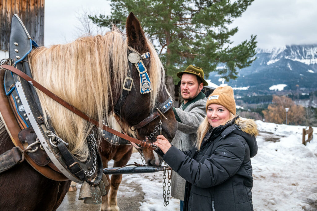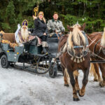 Peter und Isabell Weyerer sowie Hans Auer haben die Pferde vor die festlich geschmückte Kutsche gespannt.