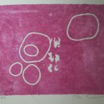 So zum Beispiel die  „Gedankenkringel“, die weiß als Radierung und Prägung in Materie auf rosarotem Untergrund dargestellt sind. Auch im Werk „Schwingung“ macht der Künstler etwas sichtbar, was eigentlich immateriell ist.