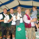 Markus Baumann und Marco Steinacher von Auerbräu Rosenheim, Bürgermeister Peter Solnar und Festwirt Werner Heinrichsberger mit Enkel Laurent