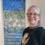 Iris Raepple vor ihrem Kunstwerk „der Lebensgarten“, das im ersten Stock im Patchwork-Gebäude zu bewundern ist