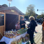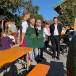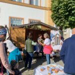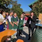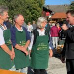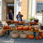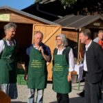 Vorstand Christian Steinbichler und Bürgermeister Andreas Fenzl eröffneten bei traumhaftem Herbstwetter gemeinsam den Apfelmarkt und freuten sich über die zahlreichen Besucher. „Leider sind aufgrund der Witterung in diesem Jahr kaum Äpfel im Angebot, dafür umso mehr Kürbisse“, so Steinbichler mit Blick auf die späten Fröste und die Unwetter im Sommer. Rund zwölf Aussteller boten auf dem Rathausvorplatz ihre regionalen Produkte zum Verkauf. Darunter erstmalig die Rimstinger Ortsgruppe des Katholischen Frauenbunds mit Handarbeiten, Türkränzen und Schmankerln aus Küche und Garten. Besonders beliebt neben Honig, Obstbränden, Most und weiteren Köstlichkeiten waren wie immer die Blumen und das Gemüse der Gärtnerei Stiftung Attl. Heilerziehungspfleger Matthäus Matejek und seine beiden Schützlinge Celine und Franz hatten alle Hände voll zu tun. Für die Verpflegung sorgten der Elternbeirat der Grundschule Rimsting sowie der Obst- und Gartenbauverein selbst. Suppe, Würstel, Crepes, Kuchen und der frisch gepresste Trauben- und Apfelsaft des Veranstalters fanden zahlreiche Abnehmer.