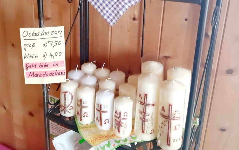 Osteraktion mit Benefizverkauf am Wastlhof in Prien-Elperting – Der Helferkreis: Helft uns helfen der Chiemgauer Ukrainenhilfe e.V. mit Sitz Frauenchiemsee bietet am Hofladen des  Wastlhof in Prien – Elperting am Samstag,  20. März  von 10 bis 15 Uhr unter Einhaltung der Abstands- und Hygieneregeln handgemachte Osterkerzen,  Palmbuschen, Frühlingskränze  und Weihedeckerl an.  Deren Erlös geht zu 100% an die Hilfsprojekte in der Diözese Tchernopil in der Ukraine.