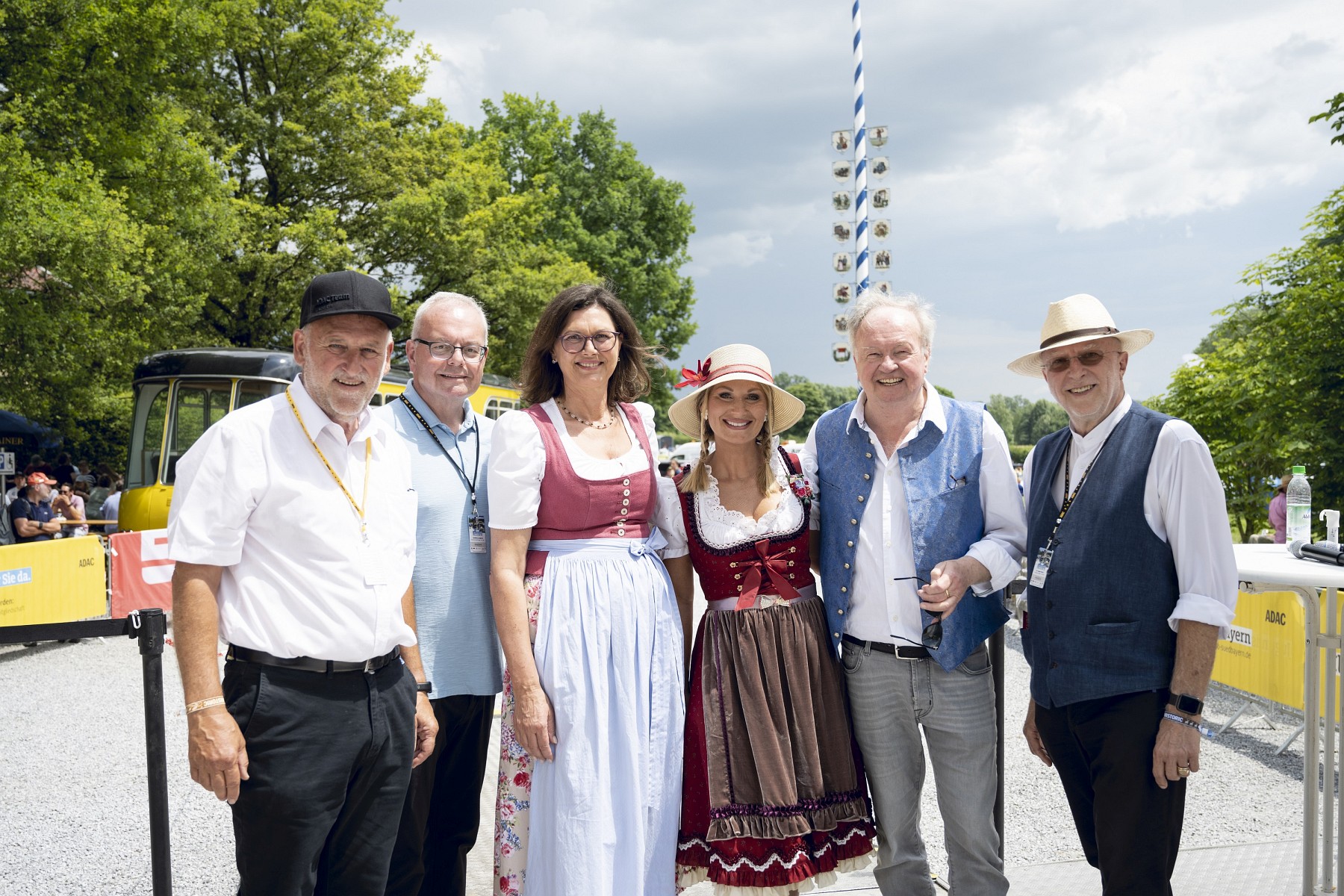 Strahlende Gesichter (v.r.): ADAC Ehrenpräsident Dr. August Markl, Regisseur Franz Xaver Bogner, Moderatorin Eva Grünbauer, Landtagspräsidentin Ilse Aigner, ADAC Tourismuspräsident Karlheinz Jungbeck und Fritz Schadeck (Vorstand für Jugend und Sport ADAC Südbayern)