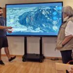Das Bild zeigt Stellvertretenden Bereitschaftsleiter Raphael Stöttner bei der Vorstellung der für die Einsatzplanung verwendeten digitalen Arbeitstafel im Aufenthaltsraum des Bereitschaftsheims.