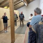 Bericht und Foto: Klaus Hellmich – Zweigstellenleiter Benedikt Paul bei der Vorstellung unausgebauter und bisweilen als provisorische Lagerräume genutzter Gebäudeteile im zweiten Obergeschoss des Schulhauses in Unterwössen. Auf dem Bild weiter zu sehen sind unter anderem Erster Bürgermeister Ludwig Entfellner (3.v.r.), Constanze Lüssow (2.v.r.) und der Rektor der Grund- und Mittelschule Unterwössen Otto Manzenberger (1.v.r.), die ebenso teilgenommen haben wie der Leiter der Musikschule Grassau Otto Dufter und der Zweite Bürgermeister Johannes Weber.