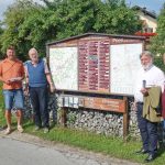 Fünf Jahre werden es demnächst, dass im Priener Ortsteil Atzing auf Anregung des Fördervereins Feuerwehr- und Gemeindehaus Atzing in der Ortsmitte zwei Informationstafeln für Wanderer und für Veranstaltungen aufgestellt worden waren. Um diese von Claus Linke aus Atzing ehrenamtlich gestalteten und betreuten Übersichten zu aktualisieren und aufgrund von den bisher gemachten Erfahrungen zu verbessern traf sich die Vorstandschaft des Fördervereins zusammen mit Dritten Bürgermeister Alfred Schelhas an Ort und Stelle. Dabei vereinbarten Vorsitzender Peter Böttinger, Ehrenvorsitzender Peter Wendl und Schatzmeister Ernst Reiter, auch auf den Rückseiten weiteres Kartenmaterial anzubringen. Damit können sich Einheimische und Gäste gleichermaßen und umfassend über Ausflüge, Busverbindungen, Gewerbebetriebe, Vermieter, Wanderwege sowie Prien- und Chiemsee-Angebote informieren. Die nunmehr zusätzlichen Maßnahmen werden wie bisher mit dem Gasthof Stocker, mit den Ortsvereinen, der Gemeinde mit Bauhof sowie mit der Prien Marketing GmbH abgestimmt und dann zeitnah umgesetzt.