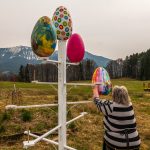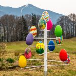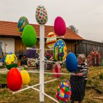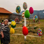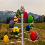 Farben und Freude an Ortsansässige und Vorübergehende gleichermaßen vermittelt der Osterbaum der Samerberger Künstlerin Edelgard Stuffer. Zu sehen ist dieser mit seinen großen und bunt bemalten Eiern unweit der Aussichtskapelle und des Gasthofes Schinkensepp im Samerberger Ortsteil Obereck.