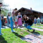 Das Programm lautete „Oarscheibm & Singa mit da Oma“ und wurde, begünstigt durch frühlingshafte Bedingungen, ein voller Erfolg. Reichlich Spaß und Freude hatten weit über 50 junge Besucher von der Kindergartenliga bis zur beginnenden Teenie Phase, etwa beim legendären Brauch gekochte und gefärbte Ostereier über Stiele gekreuzter Holzrechen oder eigens konstruierten Startrampen rollen zu lassen. Wertvolle Tipps vermittelten unter anderem junge Helferinnen und Helfer vorwiegend aus bäuerlichen Familien stammend, in denen derartiges Osterbrauchtum zur Förderung der Gemeinschaft auch im Zeitalter von Smartphone und KI (Künstliche Intelligenz) noch gepflegt wird. Ein Freilandhühner-Landwirt aus dem Ortsteil Thalham hatte sogar passende bunte Legeprodukte gesponsert.
