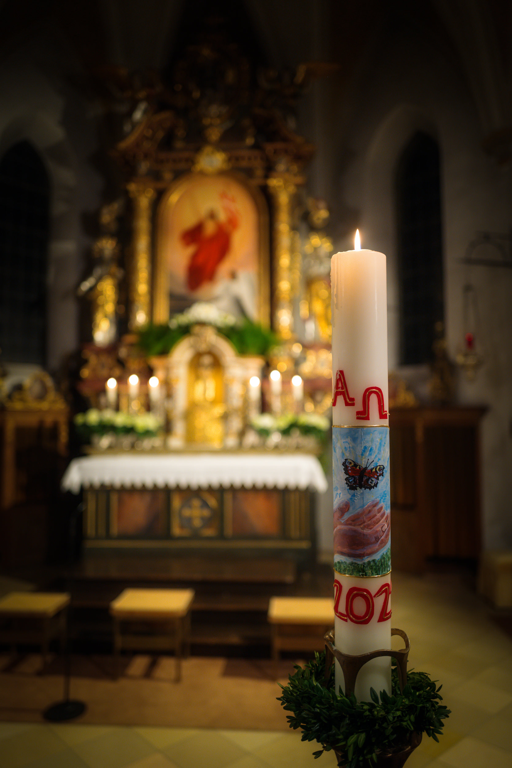 Die Osterkerze für Törwang wurde auch in diesem Jahr von Martina Hauser handgefertigt.
