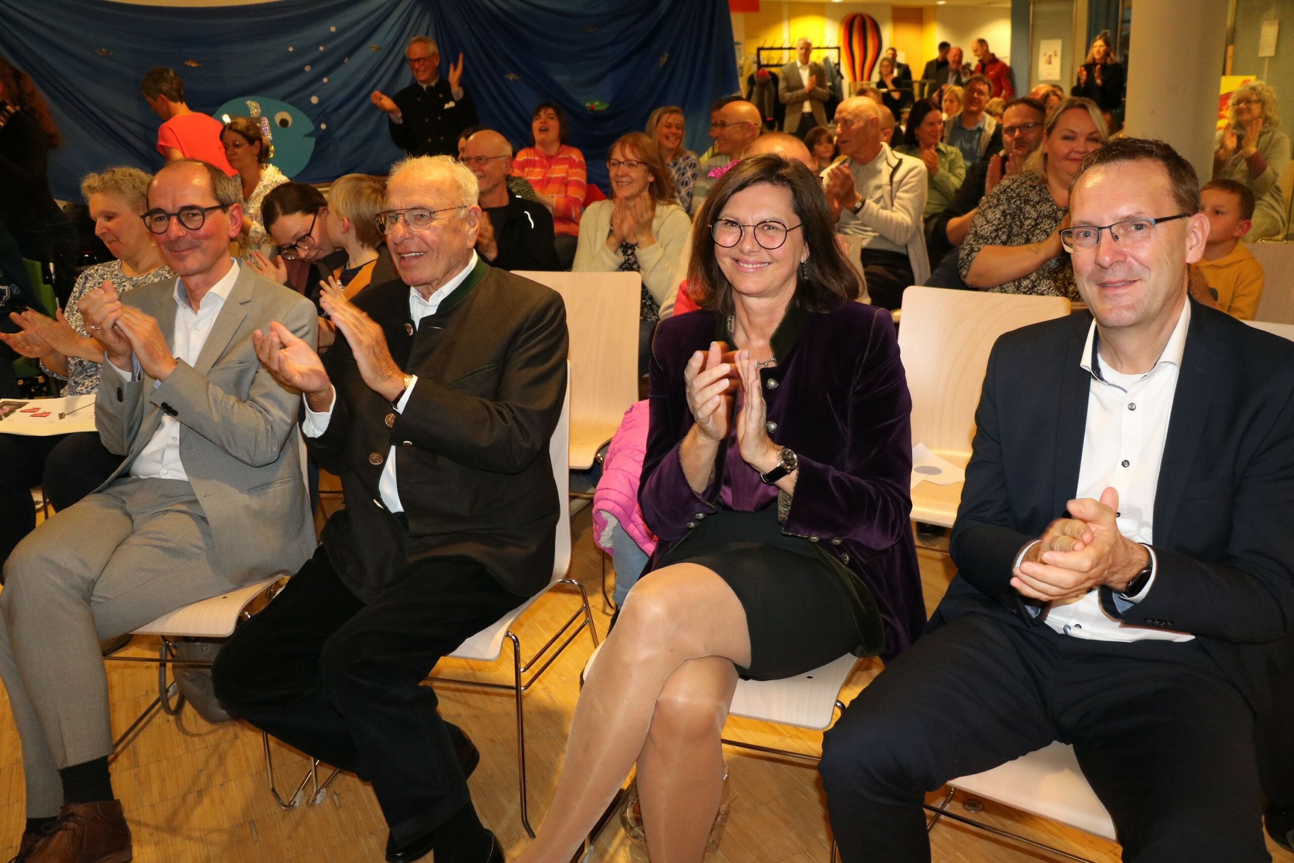 Applaus für den Kleinen Wassermann (von links) Geschäftsführer Peter Wichelmann – der Vorsitzende des Stiftungsvorstands, Professor Randolf Rodenstock – Landtagspräsidentin Ilse Aigner – Geschäftsführer Stefan Schmitt