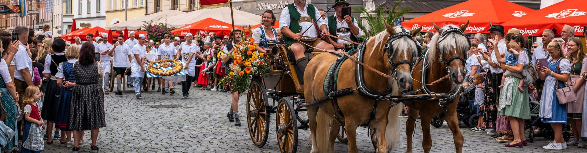 Das Rosenheimer Herbstfest dauert vom 26. August bis zum 10. September. Weitere Höhepunkte im Programm sind die Familientage am 30. August und 6. September (jeweils mittwochs), das Erntedankfest mit Umzug und Gottesdienst am Sonntag, 3. September, sowie das Brillant-Feuerwerk am zweiten Wiesn-Donnerstag, 7. September. Wir zeigen hier einen großen Bilderbogen des traditionellen Festzuges, von den Festreden am Glückshafen und dem Bieranstich im Flötzinger Zelt durch Oberbürgermeister Andreas März, fotografiert von Rainer Nitzsche