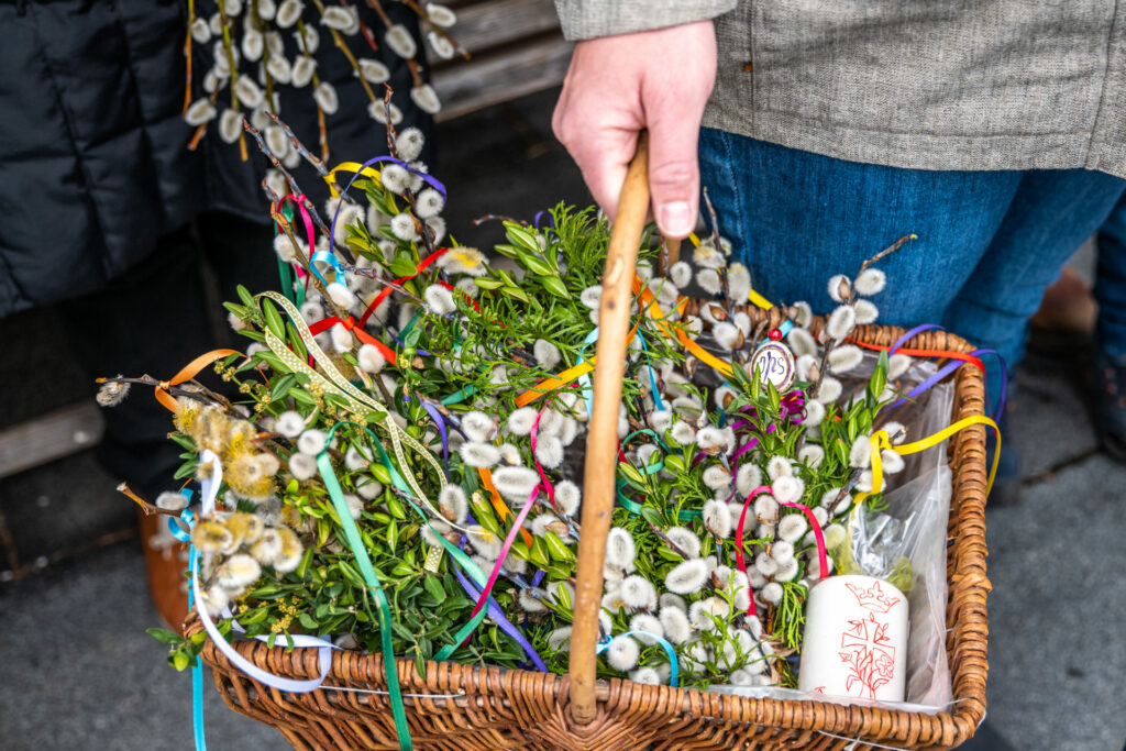 Festliche Palmweihe in Törwang läutet wichtige Tage des christlichen Glaubens ein: Traditionelle Palmbuschen aus Weidekätzchen und bunten Bändern.
