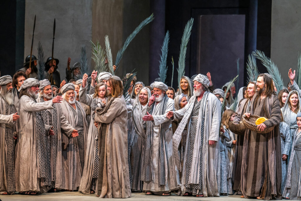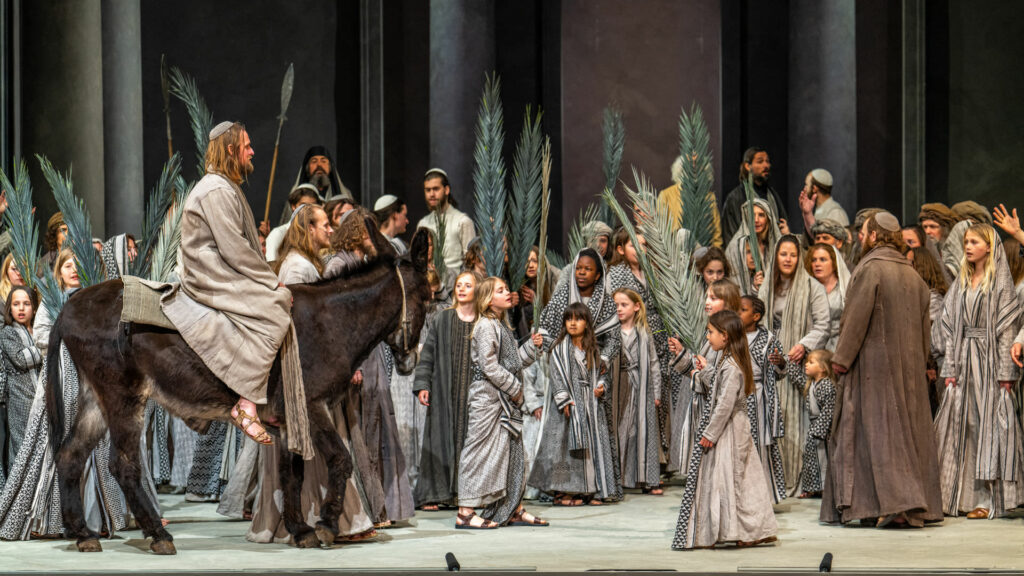 Szenenbild zum Palmsonntag bei den Passionsspielen in Oberammergau im Jahr 2022.