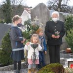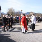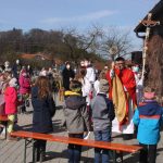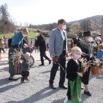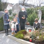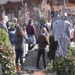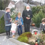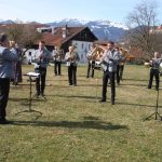 Die weiteren Kirchenbesucher standen in familiären Zusammenstand im weiten Kreis mit den nötigen Abstand davor. Die Musikkapelle unter der Leitung von Bernd Eutermoser nahm außerhalb des Friedhofes Aufstellung, begleitete die Messfeier, zelebriert von Pfarrer Christoph Rodolph. Die Leidensgeschichte von Jesus wurde von Lektoren vorgetragen, die Kinder trugen die Fürbitten vor. Ein Gefühl der Zusammengehörigkeit und Freude über die Messfeier stellte sich ein. Den Musikanten galt der Applaus und viele werden sich gedacht haben”endlich wieder a`Musi bei der Kirch”. Der Besuch der Gräber schloß sich bei vielen an, um die Grabstelle mit den geweihten Zweigen zu schmücken.
