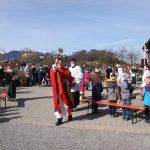 Auch wenn die bekannten Umstände die Glaubensgemeinschaft stark einschränken, hatte doch der Wettergott ein Einsehen, denn er ließ in Neubeuern den Himmel weiß-blau strahlen und die Sonne wärmte zusätzlich. So konnte die Palmweihe im weiten Rund des Friedhofes in Altenbeuern gefeiert werden.Im Vorbau des Leichenhauses war der Altar aufgebaut, davor der Bereich der Kinder.
