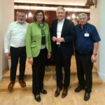 Musikalisch umrahmt wurde die Veranstaltung von den Arnstorfer Musikanten unter der Leitung von Roland Hofbauer, mit dabei am Akkordeon, der Bürgermeister von Arnstorf, Christoph Brunner. Es waren musikalische Klänge aus Niederbayern, aus der Heimat von Max Straubinger. Zum Abschluss der Benefiz-Veranstaltung kam dann der Höhepunkt. Hansjörg Durz konnte an Stephanie Stauss vom Bayerischen Rundfunk, einen Scheck über 7.500 EUR, zu Gunsten hilfsbedürftiger Menschen an die „Aktion Sternstunden e.V.“ überreichen.