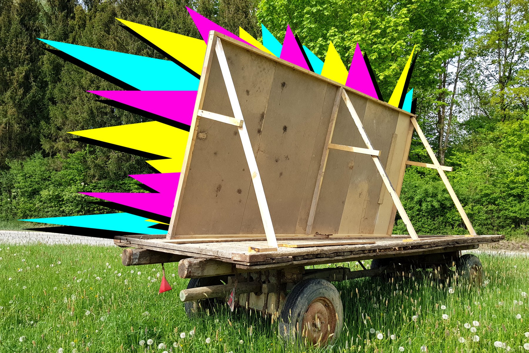 Titelmotiv der Ausstellung „¡Let’s Fetz! Partyreklame im ländlichen Raum“. Bildquelle: Bezirk Oberbayern, Archiv FLM Glentleiten, Foto: Dworsky