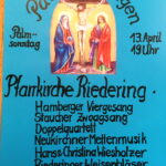 Der Pfarrverband Riedering lädt am Palmsonntag, 13. April um 19 Uhr zum traditionellen Passionssingen in die Pfarrkirche “Maria Himmelfahrt” in Riedering ein. Die Einstimmung auf die Karwoche gestalten Gesangs- und Musikgruppen aus der Region.