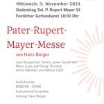 Am 3. November findet um 18:00 Uhr in der Münchner Jesuitenkirche St. Michael eine Pater-Rupert-Mayer-Messe mit Hans Berger und dem Montini-Chor statt. Der Festgottesdienst zum Patrozinium findet nach liturgischen Texten, sowie Texten von Maria Luise und Georg Thurmair, Anton Wenhart und Helmut Zöpfl statt.