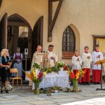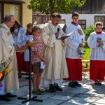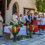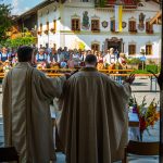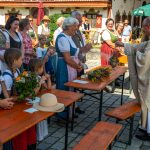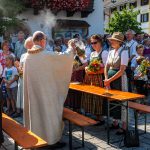 Mit einem Festgottesdienst in der Törwanger Pfarrkirche feierten die Samerberger heute Kirchenpatrozinium mit Kräuterweihe. Geleitet wurde der Gottesdienst von Pastor Gabor Kant gemeinsam mit Diakon Günter Schmitzberger. (Gabor Kant, der 2016 im St. Marien-Dom in Hamburg zum Priester geweiht wurde, hat seinen Arbeitsschwerpunkt in den Gemeinden St. Vicelin Bad Oldesloe und St. Michael Bargteheide und kam zu Besuch auf den Samerberg.) Pfarrer Kant kam heute zwar zum Fest in Lederhose und Trachtenhemd zum Samerberg, hatte dazu jedoch schwarze Socken an. Die Mesnerin bemerkte diesen Fauxpas natürlich noch rechtzeitig vor Beginn der Messe. So konnte man dem Priester natürlich keinesfalls erlauben, den Festgottesdienst in Oberbayern zu beginnen. Also wurde kurzerhand Hans Auer kontaktiert, der dann aus seinem Trachtengeschäft die passenden Trachtenstrümpfe besorgte. Nach dem Wechsel der Strümpfe durfte Pastor Kant dann, wenn auch mit ein paar Minuten Verspätung, mit dem Gottesdienst beginnen, aber erst, nachdem er der anwesenden Gemeinde seine Trachtenstrümpfe unter dem Priestergewand gezeigt hatte. Die Gemeinde zeigte sich dann während der Messe jedoch nicht nachtragend und man verzieh einem Priester aus dem hohen Norden bzw. „aus der Fremde“ wie Günter Schmitzberger es ausdrückte, einen solchen Fehler. Auch hatte Pastor Kant keine Mühe, die Gemeinde mit einer mitreißenden Predigt und seiner sichtbaren Begeisterung beim Segnen der Kräuterbüschel für sich zu gewinnen. Musikalisch begleitet wurde der Festgottesdienst vom Kirchenchor unter Leitung von Jürgen Gieck sowie den Samerberger Bläsern.