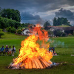 „Da hinten ist schon der Hof!“ – Mit großen Augen und voller Vorfreude stapften wir Kinder vom Kindergarten Törwang durch den Buchenwald, vorbei am Ortsteil Fading, hinauf zum Aussiedlerhof der Familie Weyerer. Es roch nach Sommer, die Luft war warm – und irgendwie aufregend. Unsere Füße liefen fast von allein, denn dort oben wartete das große Geheimnis auf uns: das Peter-und-Paul-Feuer!