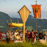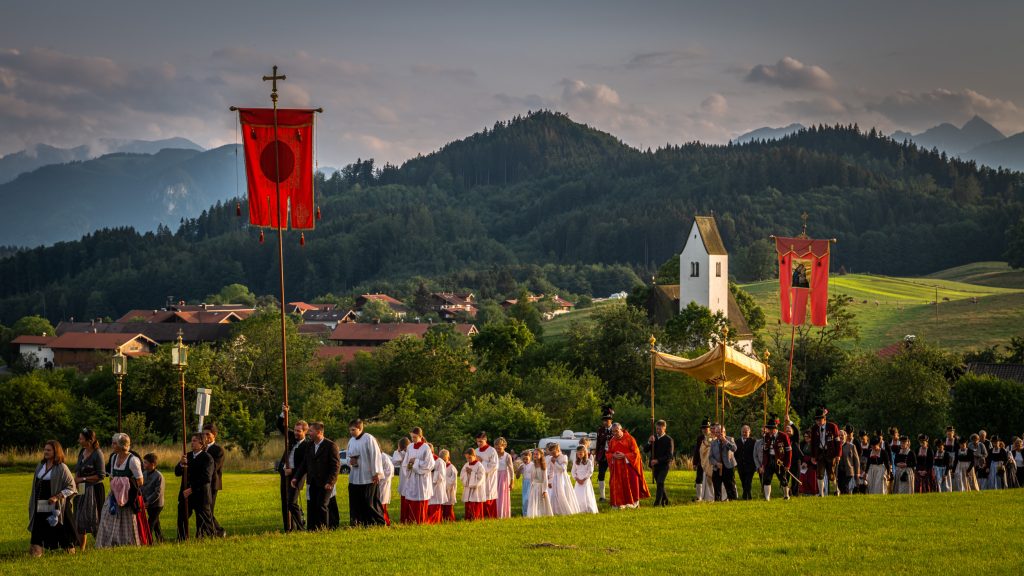 Die Farbenpracht in Verbindung von Glaubenspflege ist nach den letzten Coronajahren am Peter- und Paul-Tag auf dem Samerberg zurückgekehrt. Traditionell feiert die dortige Kirchengemeinde am Namenstag des Heiligen Petrus und des Heiligen Paulus in der Kirche “St. Peter” in Steinkirchen einen Gottesdienst. Heuer war es wieder soweit und das Wetter machte auch mit, so dass nach dem Gottesdienst mit Pfarrer Robert Baumgartner und Diakon Günter Schmitzberger noch die  aussichtsreiche Prozession mit Gebeten und Gesang sowie mit den Ortsvereinen stattfinden konnte. Sie wurde musikalisch begleitet von Musikanten der Musikkapelle Samerberg.
