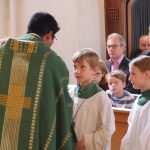 Fünf junge Ministranten, die seit der Erstkommunion ihren Dienst in der Kirche üben wurden von Ministrantenbegleiter Markus Möderl vorgestellt. Möderl dankte dabei auch den Oberministrantinnen Helena Wappmannsberger und Anna Ganter für deren fürsorgliche Ausbildungsleitung. Pater Joshy segnete die neuen Ministranten auf die Fürsprache des Heiligen Tarzisius, dem Heiligen für die Ministranten und überreichte ein Kreuz als Geschenk.