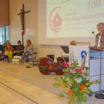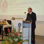 „Essen und Trinken hält den Leib zusammen“ – mit diesem Spruch begann Kardinal Reinhard Marx seine Ansprache bei den Pfarrhaushälterinnen und es war ihm ein persönliches Anliegen, den 330 Pfarrhaushälterinnen in Bayern und dem vor 100 Jahren gegründeten Verein ein Vergelt´s Gott zu sagen, dabei sagte er: „Es ist großartig, was der Verein bisher geleistet hat und noch immer leistet, schauen wir dankbar zurück und nehmen wir die Gegenwart mit all ihren Herausforderungen an“. Dann sagte der Kardinal: „Essen und Trinken war für Jesus keine Nebensache, Jesus ist das tägliche Brot in Form von Liebe, Leben und Begegnung. Es geht um viel mehr als um die Hauptsache, wir haben genug zu essen, das Brot, das wir brauchen ist ER, Jesus Christus“. Ein weiteres Thema der Kardinals-Predigt war die Gastfreundschaft, dazu sagte er: „Schon vor Christi Geburt sagte Aristoteles, dass es ohne Gastfreundschaft kein Verstehen gibt. Und so sind Pfarrhäuser ein Zuhause der Gastfreundschaft und der Großzügigkeit, seien wir froh, dass es diesen Verein gibt“. Glückwünsche und Dankesworte an die Pfarrhaushälterinnen kamen auch von Dekan Gerhard Beham aus Wolfratshausen, der bereits seit 22 Jahren als Präses Ansprechpartner für die Pfarrhaushälterinnen ist. Den Festvortrag hielt Dr. Hildegard Gosebrink, Leiterin der Arbeitsstelle Frauenseelsorge der Freisinger Bischofskonferenz mit dem Thema „Meisterinnen der Lebenskunst – 100 Jahre Pfarrhaushälterinnen mit Hand und Herz“.