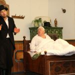 „Und was ist mit mir?“ Die Zwagerin (Rita Stoib) und der Zwirnschartner (Georg Aicher, links) am Krankenlager des Dugg Bertl (Lambert Huber)