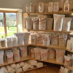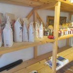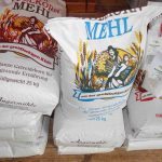 Auch wenn die Mühle nur noch für die eigene Futtermittelerzeugung in Betrieb ist und nicht mehr selbst gemahlen wird, die Produktpalette im Laden enthält dennoch 35 verschiedene Mehle, neben den bekannten Weizen-, Roggen- und Dinkelmehlen gibt es noch eine Menge an bekannten und unbekannteren Mehlprodukten. Dank eigener rund 700 Hennen gibt es auch stets frische Eier und eine Reihe von daraus selbst hergestellten Nudelsorten. . „Mehl wird seit Corona immer mehr gewünscht, die Leute backen wieder mehr und holen sich die Abpackungen von einem Kilogramm bis 25 Kilogramm. Gerne werden auch unsere entsprechenden Rezepte mitgenommen“ – so erste Informationen zum Laden-Sortiment. Zu diesem gehören auch noch biologische Tees, selbst abgefüllte Gewürze, hausgemachte Marmeladen aus heimischen Früchten, Schnäpse regionaler Bauern, Spezialitäten aus Südtirol und seit zwei Jahren eine biologische Auswahl an vielfältigen Tomatenerzeugnissen und ausgezeichnete Weine vom Betrieb “LaSelva” in der Toskana.