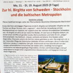 Eine Pilger-Busfahrt zur Heiligen Birgitta von Schweden, nach Stockholm und in die Baltischen Metropolen bietet das Innviertler Busreiseunternehmen Leidinger für die Zeit vom Montag, 11. bis Dienstag, 19. August an – hier sind noch ein paar Plätze frei.