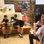 Für den musikalischen Rahmen sorgten zwei junge Talente aus Piesendorf und Saalfelden: Der 14-jährige Simon Embacher begeisterte auf der steirischen Harmonika, er spielt zudem Gitarre und Schlagzeug – vielseitig und ist bereits bühnenerfahren. Der 15-jährige Jakob Höl-ler – ein leidenschaftlicher Ranggler – greift seit vier Jahren zur Gitarre und tritt regelmäßig mit seiner Familie und Simon auf. Für ihn ist Musik ein willkommener Ausgleich zum Sport. Anlass der Veranstaltung war die Ausstellung „Bewegliche Figurenwelt trifft zeitgenössische Kunst“, die das Leben dieser Menschen bei der Arbeit auf Hof und Feld beindruckend dar-stellt. Die Werke stammen vom Künstler Steinberg Thoma, der selbst viele Jahre als Knecht in Neukirchen tätig war. Die Ausstellung kann im TAURISKA-Kammerlanderstall besichtigt werden.