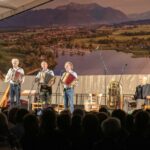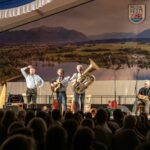 Im Rahmen des großen Musikfestes gastierten Gerhard Polt und die Wellbrüder am Chiemsee und legten vor vollbesetztem Zelt einen grandiosen Auftritt hin. Hochmotiviert und gut drauf hauten die vier Bühnen-Routiniers ihre Gschichten raus, sowohl schräg-musikalisch wie auch wortgewandt in bekannter Polt-Manier. Das Publikum hat den „Bayerischen Abend“ sichtlich gefeiert und auch den Künstlern konnte man die Spielfreude und Begeisterung anmerken. Neben bewährten Klassikern konnten die drei hochmusikalischen Brüder aus dem Biermoos und ihr langjähriger Weggefährte Gerhard Polt auch mit Beiträgen zu aktuellen Themen überzeugen und gingen in ihren Gstanzln sogar auf lokale Bekanntheiten ein. Der Kontakt zu den Leuten vor der Bühne funktionierte und die Resonanz war überwältigend. Nach dem herzlichen Dank von Musikvereinsvorstand Christian Kroner und der Übergabe der Gastgeschenke an die bayerischen Musikkabarett-Legenden war natürlich noch die eine oder andere Zugabe fällig. Den durchaus recht gelungenen Abend rundete dann das zünftige Reblaus-Trio auf der Barbühne ab.