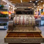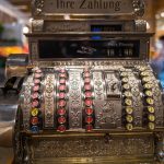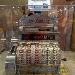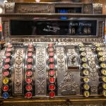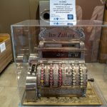 Die Geschichte der Registrierkasse begann 1879 in den USA. Der Geschäftsmann James Ritty entwickelte mit seinem Bruder die erste Kasse, um sichere Erkenntnisse über die Geschäftsvorgänge in seinem Verkaufsladen zu erhalten. Die Idee zur Konstruktion einer Kasse kam ihm während einer Schiffsreise, als er eine Vorrichtung sah, die die Umdrehung der Schiffsschraube zählte. Den Brüdern Ritty gelang es jedoch nicht, Kassen in größeren Mengen zu verkaufen. Sie scheiterten an dem Misstrauen der Verkäufer gegenüber diesen “Diebesfängern”. Nach mehreren erfolglosen Versuchen einiger Geschäftsleute, die Kasse auf dem Markt durchzusetzen, erwarb der Händler John H. Patterson 1884 die Rechte für die Kassenherstellung und gründete die National Cash Register Company (NCR). Als einer der ersten Industriellen richtete er eine Verkäuferschule ein, lehrte Verkaufstechniken und hielt Verkaufsbesprechungen. Mit gezielten Werbekampagnen und ausgebildeten Vertretern gelang es nun, die Registrierkassen im Einzelhandel bekannt zu machen. Innerhalb weniger Jahre entwickelte sich NCR zum weltweit führenden Hersteller von Registrierkassen. Neben der neuen Werbestrategie war die technische Weiterentwicklung der Kassen ein Grund für den Erfolg. Kassen, die Quittungen ausdruckten, kamen 1892 auf den Markt. Auch die historische Kasse, ausgestellt bei Prechtl, kann Quittungen drucken. Sie ist auch heute noch voll funktionsfähig. Verborgen hinter einem eigens dafür vorgesehenen Schloß konnte nur der Chef die Tagesumsätze ablesen.